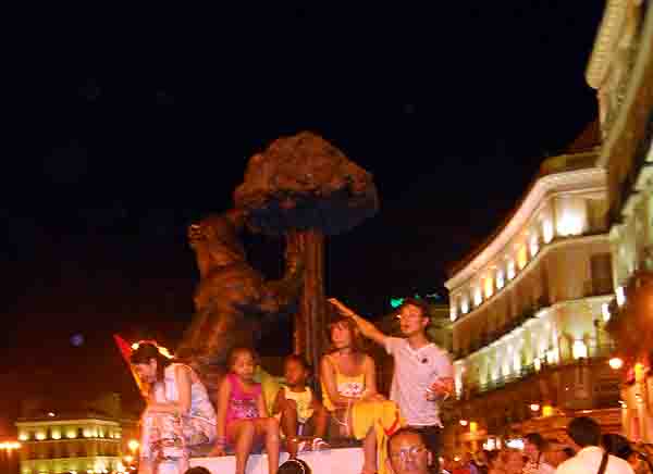 Llego a eso de las diez de la noche l .el ambiente de ALEGRIA,los jóvenes de todo el mundo bailaban, cantaban , Sol era una autentica fiesta llena de banderas de todo el mundo