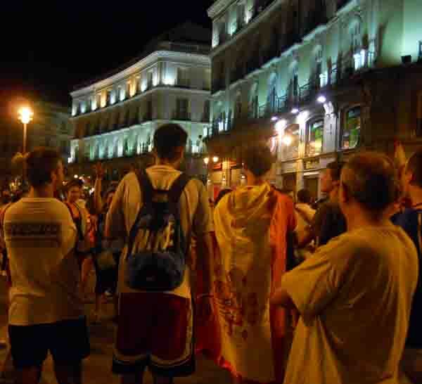 Impresionante. Desde que he llegado de vacaciones esta tarde nada podia hacerme tan feliz como el espectáculo en Madrid: todas la calles llenas de juventud, alegre , bajo un sol de campeonato. Hemos intentado comer algo rápido y estaba todo bloqueado por oleadas de jóvenes: en mi barrio todos extranjeros. Es la primera vez que no puedo ir a comer a un restaurante y salgo contento de no poder entrar siquiera, al ver a tanta juventud feliz y testimonial.