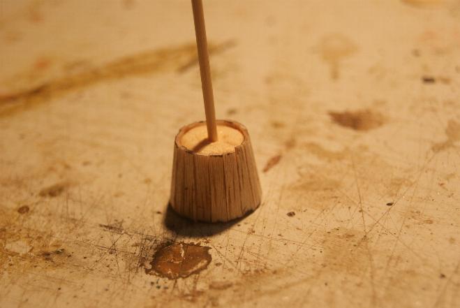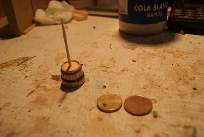 5.- Corto un trozo de madera de balsa de 2 mm con la moneda de 10 cts y la pego en el fondo.