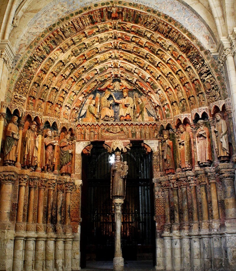 Esta portada fue labrada y policromada en el último cuarto del siglo XIII, siendo una de las manifestaciones escultóricas monumentales más importantes del gótico en Castilla.