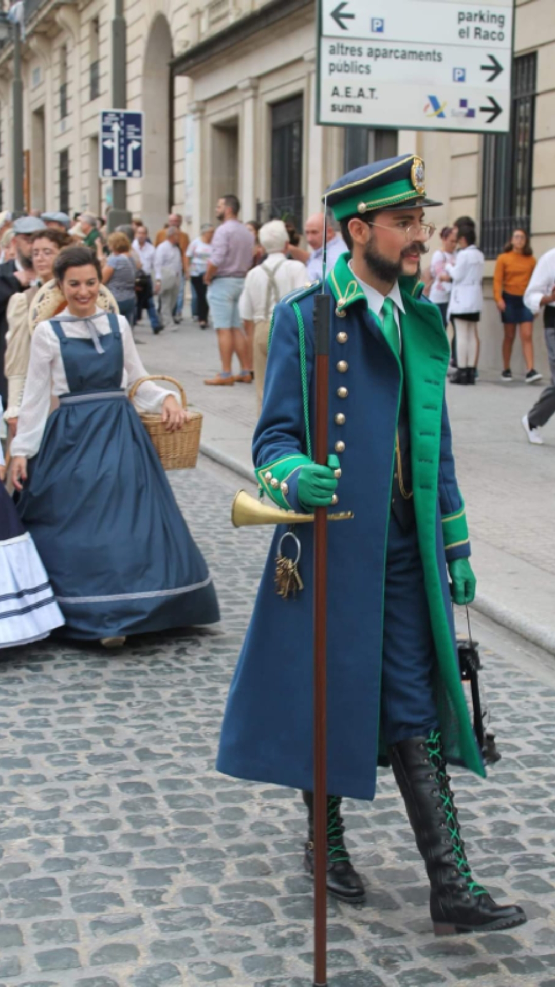 Primitivamente llevaban un chuzo (una especie de lanza corta compuesta por un palo con un pincho en la punta) y un farol. Más adelante y hasta el final llevaron solo un bastón recto, sin pincho y el farol ya no fue necesario cuando se popularizó el alumbrado público. Iban vestidos con un gabán azul y usaban gorra de plato." de la Wikipedia