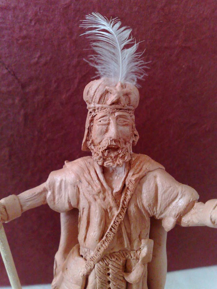 Bueno aqui le he añadido algun detalle mas y tiene alguna modificacion como la estrella del turbate, asi como la barba que ahora es mucho mas frondosa y esta hecha pelo a pelo por curioso o extraño que parezca, bueno mejor dicho mechon a mechon, en las ultimas fotos podeis ver el tamaño de la figura con la referencia de un mecherito y en las otras el inicio del pintado con pinturas al oleo, esto ya me esta costando mas ya que es la primera que pinto al oleo, pero me voy acostumbrando a trabajar poco a poco y me gusta la versatilidad que da que tarde en secar ya que poco a poco voy mejorando las veladuras y los pequeños retoques. Ya solo queda dejar que seque bien y darle los ultimos retoques en pulseras la estrella y algun detalle mas en dorado.