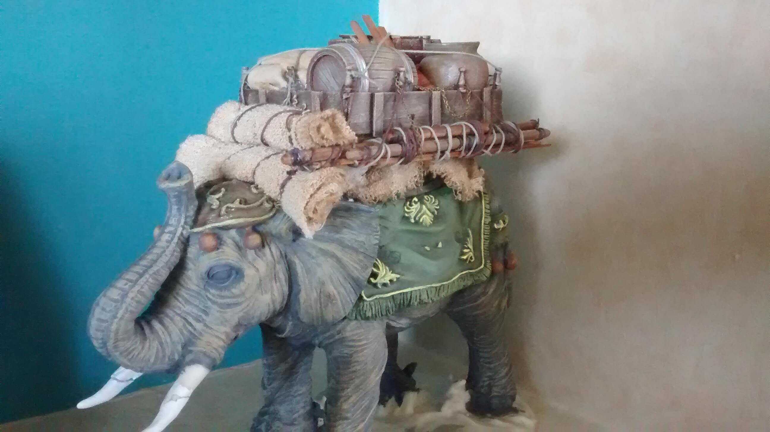 es un elefante que pertenecia a una cabalgata de reyes, pero no me gustaba nada pq el rey era mas grande que el propio elefante, no guardaba para nada las proporciones asi que elimine al rey y le he colocado una carga