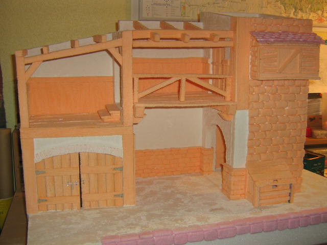 -Gracias a todos por vuestras palabras. Para los ladrillos, lo primero es darles la forma en porex con una cuchilla, para luego con un cepillo de puas ir pinchando la parte visible hasta conseguir el efecto. Pongo unas fotos para que lo veas. un saludo.