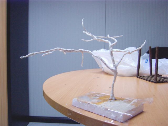 El sistema es bastante sencillo. Te pondré algunas fotos sobre el proceso de como hice una parra, ya que creo es muy similar al de la enredadera... tenía más fotos pero las he perdido...