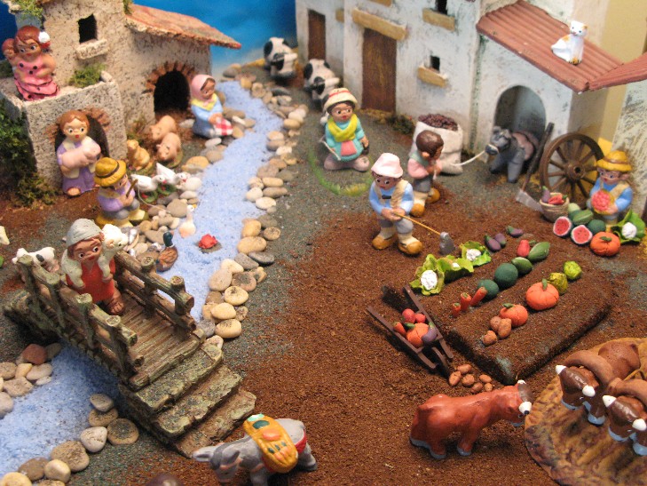 e cogiddo abono para plantas y e formado una especie de cuadrado con surcos, y en los surcos e pues mis creaciones de verduras, zanahorias, coles, lechugas, puerros, tomateras.... y queda muy bonito, ademas de que tengo cerca un lago de mi belen y e aprobechado para poner desde la noria un canalon para que llegue asta una alberquita que tengo desde donde se supone que cogen el agua para regar, y todo me a quedado muymbien,