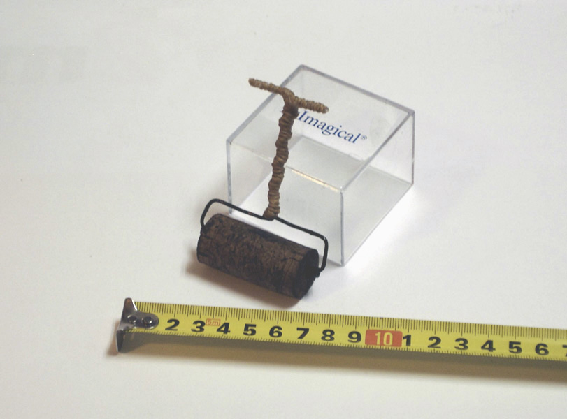 Dar nogalina al corcho y pintar el alambre de negro (segunda foto).