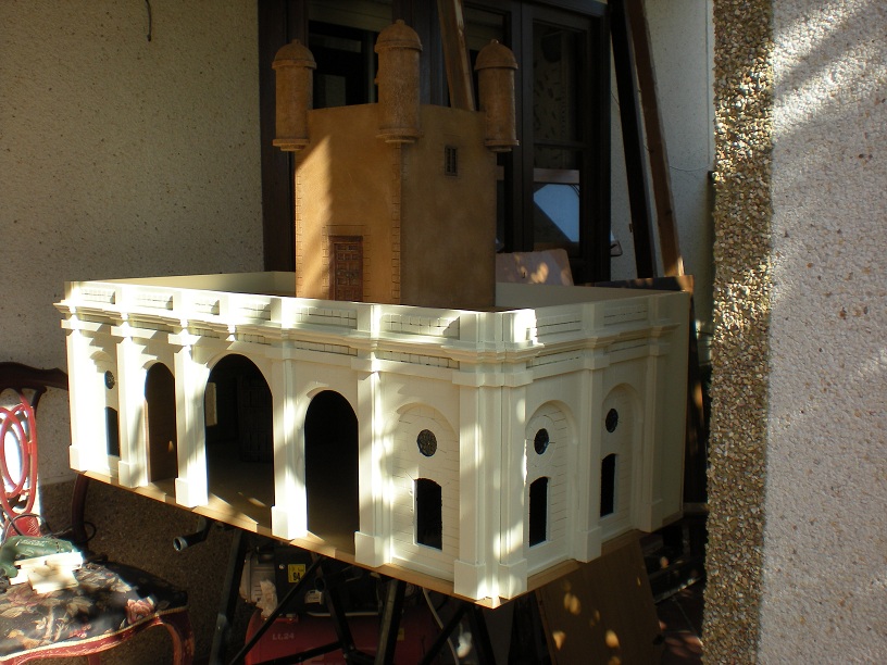 Os pongo imágenes de como va la obra. De momento avanzo bien, y salvo algunos errores de cálculo, corregidos a tiempo, me está quedando muy bien para mi gusto. Espero poder terminarlo antes de termine el verano, ya que es un trabajo un poco difícil debido a la cantidad de detalles que tiene el edificio original.