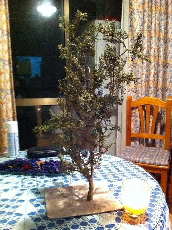 Yo hice hace poco uno con la flor del amaranto, mi pasión es hacer árboles y matojos con flores o hierbas naturales, tengo muchos, tanto que no me caben en el belén, jajja.