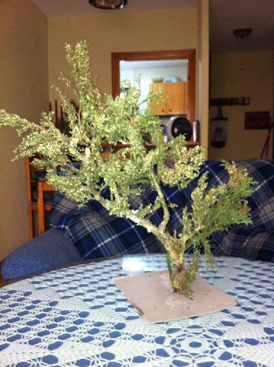 muchas gracias, para las copas de los arboles simplemente use las ramitas de tuya más pequeñas y espolvoreadas con oregano, a ver si tengo la suerte ver algun trabajo tuyo y por que no hacer algo parecido