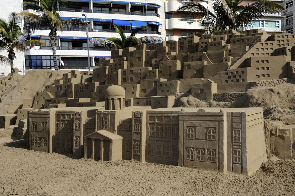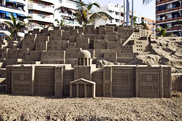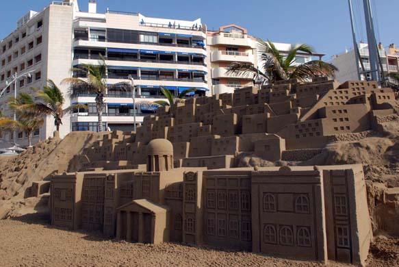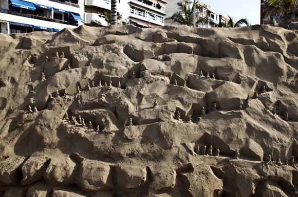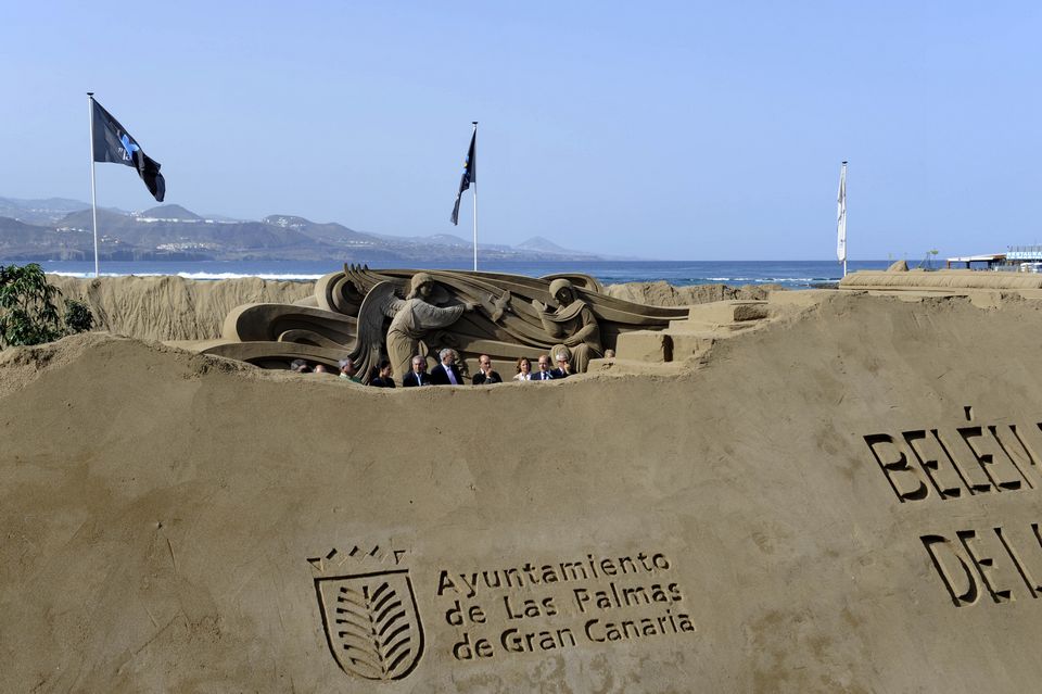 Mil toneladas de arena, agua y la destreza y la imaginación de ocho de los mejores escultores de arena del mundo han permitido levantar en menos de veinte días el Belén de Arena de Las Canteras, que este año incluye muchísimos elementos canarios, como los Riscos, el Roque Nublo, las dunas de Maspalomas o alfareras que evocan a las mujeres pintadas por Jorge Oramas. Las escenas canarias conviven con las tradicionales del Belén, como diferentes recreaciones de la aldea donde nació Jesús. Justo enfrente, en el paseo se alza un enorme árbol de Navidad, en el que los ciudadanos han podido colgar sus deseos para el año que está a punto de llegar.