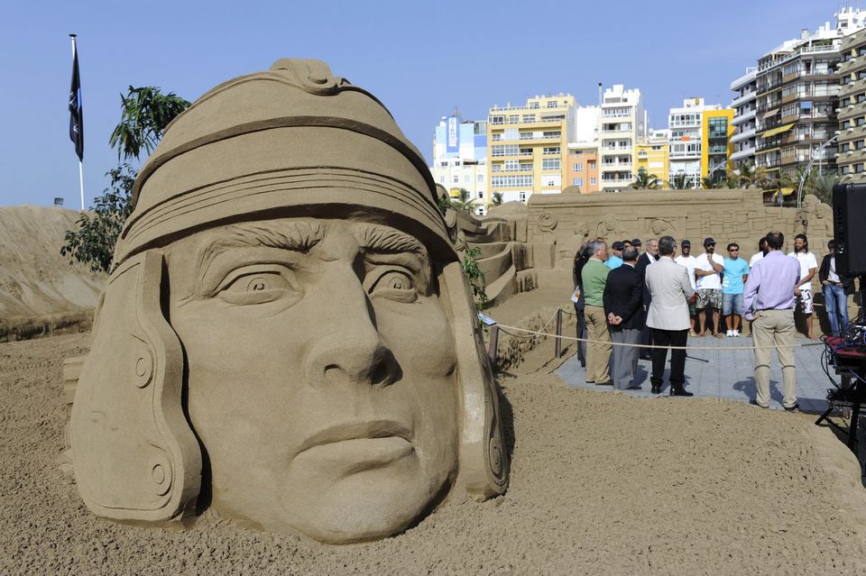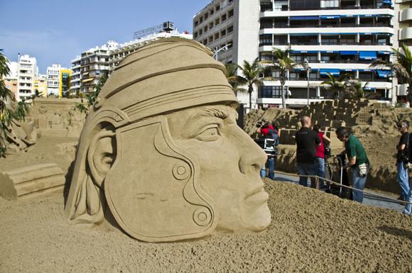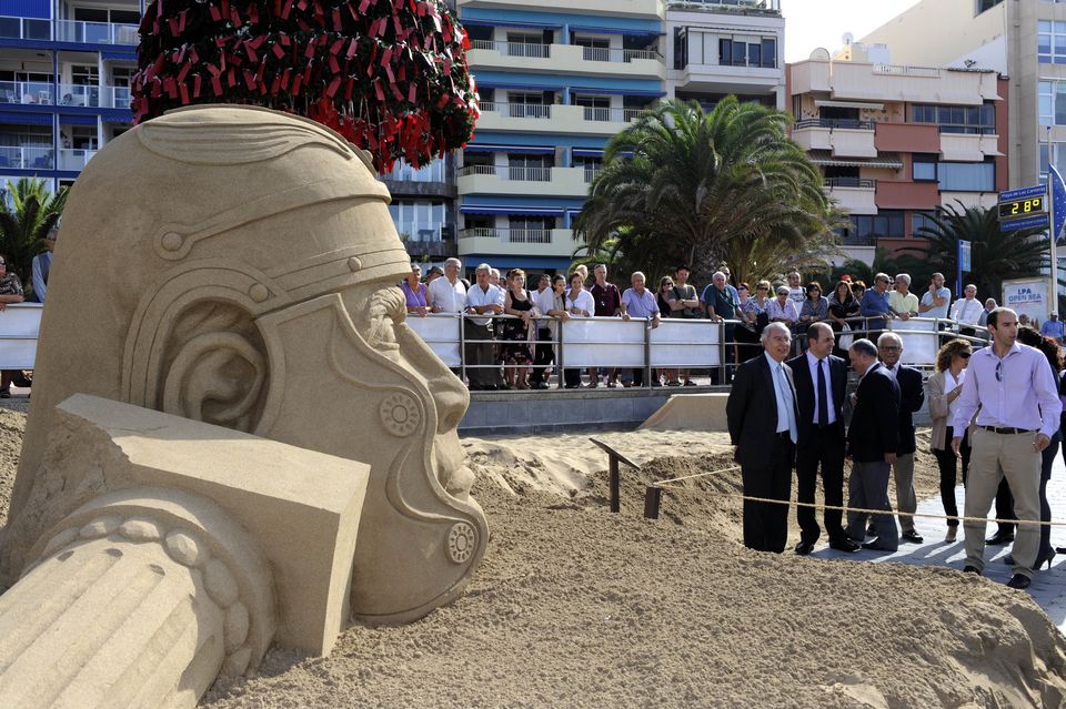 Los escultores daban ayer los últimos toques a la obra en medio de un sol de justicia, una imagen que el Ayuntamiento de Las Palmas de Gran Canaria quiere utilizar para vender el excelente clima del que goza esta tierra durante las fechas navideñas, de cara a su promoción turística.