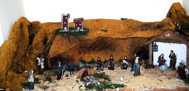 Saludos a todos los foreros y, por supuesto, Feliz Navidad. Aquí os ofrezco algunas fotos de mi belén que he realizado este año ante la imposibilidad de montar uno napolitano muy antiguo que actualmente está en restauración. Las figuras son de barro algunas, de resina otras, la mayoría compradas en bazares. El musgo y el corcho es natural y recogido de la Sierra Norte de Sevilla, mientras que el pesebre y el puente me los ha hecho un amigo carpintero.