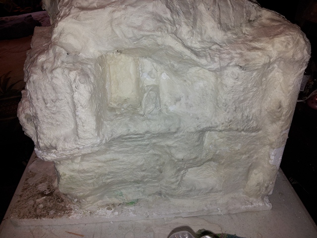 Siguiendo el consejo de Carlos (piña) solo enyese la bóveda de la gruta y lo demás lo estoy cubriendo con papel de cocina y cola blanca con agua esto para cubrir huecos (que son muchos) y reforzarlo más, aquí la única foto que tome con el yeso