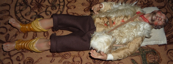 ( ...) El Pastor Benino, es la figura más importante y particular del Belén Napolitano ya que en su sueño se le aparecen los ángeles que le anuncian el Nacimiento de Jesús, que se encuentra en una gruta envuelto en pañales encima de una cama hecha de heno.