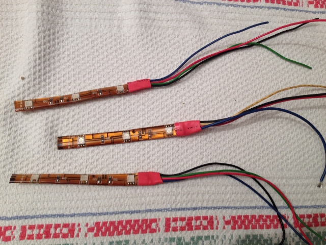 Las tiras se pueden cortar de tres en tres, combinar los colores ya que son rojo verde y azul y tomar la combinación que mas guste y lo mas importate se puede pegar al porex y no lo quema.