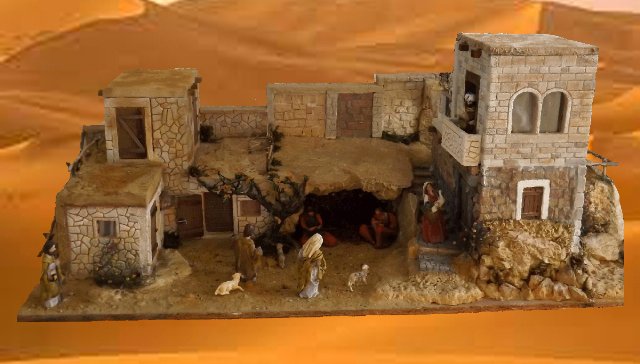 Aclaraciones: por la construcción del belén no ha sido utilizado nada que no se encuentra en naturaleza [albañilerías, gruta, rocas etcétera provienen de material retirado por las pequeñas canteras de "piedra" amolará presentes en mi zona e incididas donde necesario con la técnica usada por nuestros "viejos", la coloración y el terreno son conseguidos con el mantillo de tales sitios, las plantas de raíces, las flores de flores de una particular planta encontradas en el bosque].