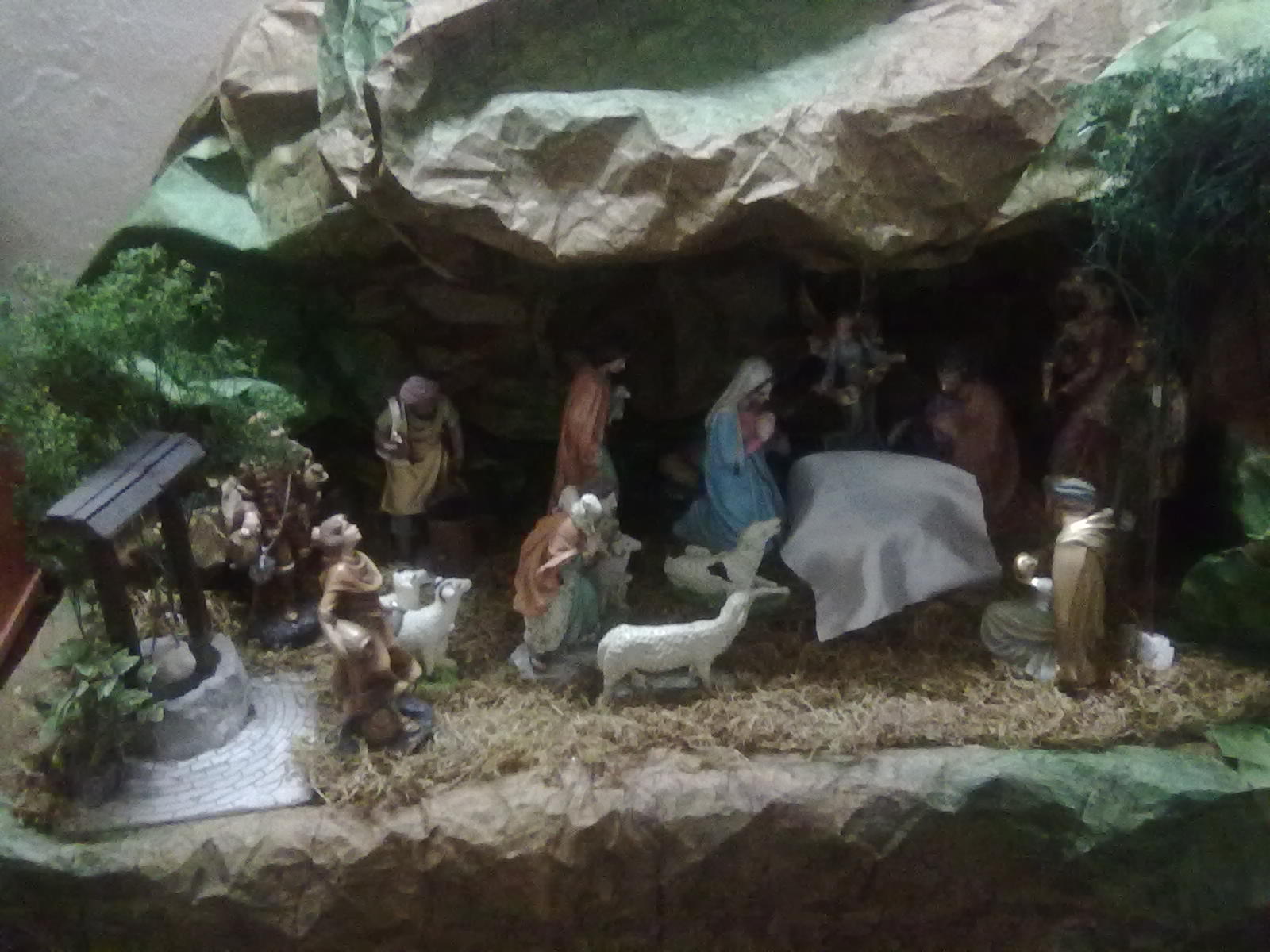Muy lindo. Acá en Guatemala utilizamos mucho el tipo de papel, con que te has fabricado la cueva, aquí le llamamos papel de embrellados, que es papel de envolver con pegamento blanco y aserrín. Feliz año nuevo
