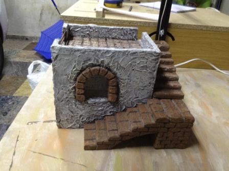Hola. Esto cuando empiezas ya no puedes parar. Como segunda casa para el pueblecito que estoy planeando he hecho una casa con escalera exterior y un palomar en la terraza. Es para el belén de este año que ponemos en casa, con figuras de 10 cm. Falta algún retoque de pintura al palomar y poner los detallitos y las palomas. Todo 100% aprendido en el foro, he ido copiando aquí y allá. Muchas gracias a todos. Os pongo las fotos para que veáis el proceso.