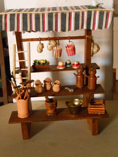 Aclaro que los guacales, maceta con flores,escalera, càntaras, el estante, el nido con paloma y las herramientas de trabajo las realicè yo, el resto de implementos como cestas,los sombreros, vasijas de barro las compre en una casa de artesanìas.