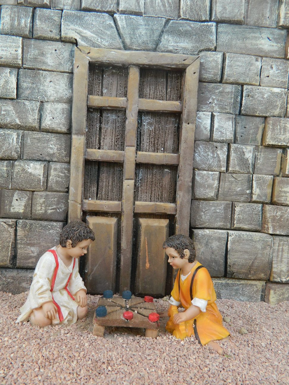 Pero hemos querido que este Belén tuviera una evocación muy directa al Greco y para ello se eligió el cuadro que recrea la Anunciación a María, del Museo del Prado. Con la colaboración de la escultora Montserrat Ribes se ha reproducido el contenido de este conocido cuadro, con dos figuras de barro a palillo, de unos 28-30 cm, que reproducen exactamente dicha escena. El efecto es espectacular y como el cuadro ya es muy conocido, adjunto la fotos de dicha escena en dos formatos distintos que dan una idea más precisa que los de color, siempre “difíciles” en una ambiente de corcho y musgo. Las fotos están cedidas por bob-trenzzas y la realización de la escena, en gran parte, es también de nuestro amigo forero.
