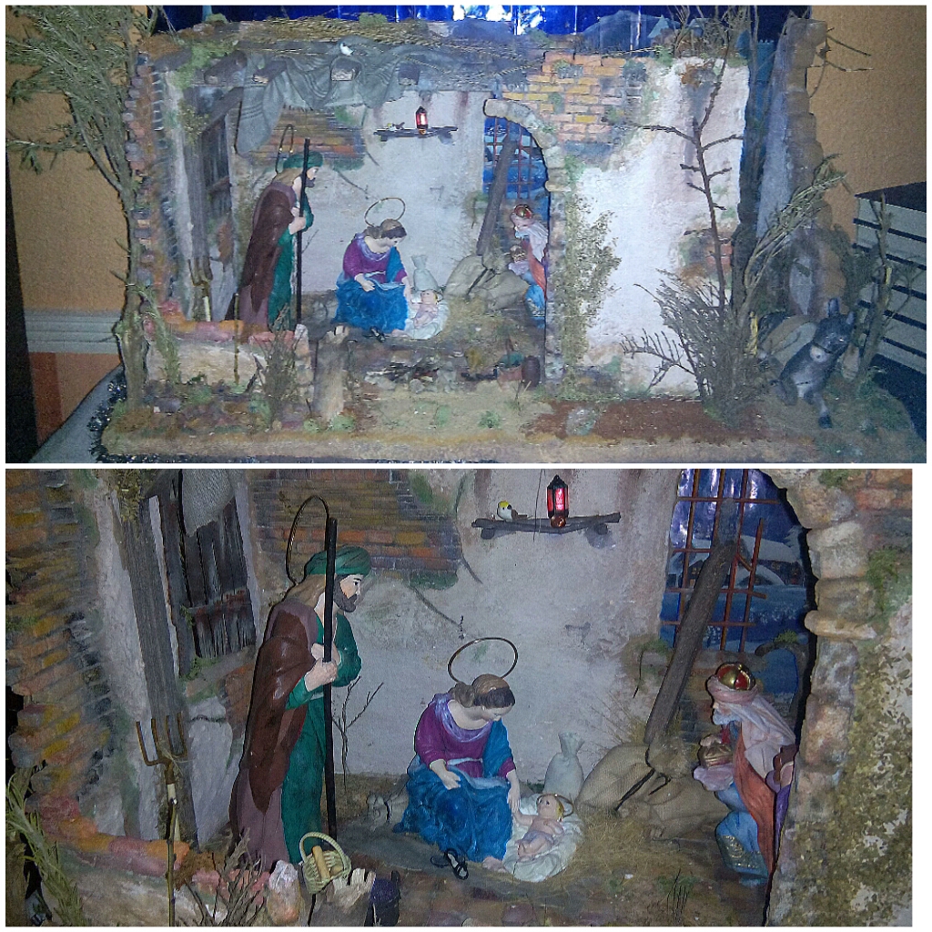 Aqui os muestro una pincelada, del pesebre que he montado en mi casa para este año ( las fotos no salen muy bien, porque tiene iluminación nocturna).