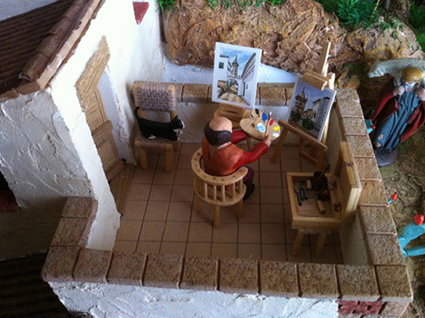 Este es el belén que he montado este año, es el trabajo de varios años y tiene la particularidad que se le da la vuelta, está en el centro de la estancia y el espectador pasa a escasos centímetros de la composición. Saludos