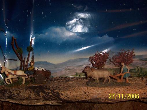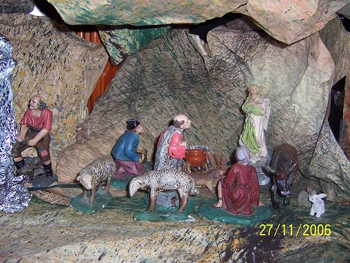Aunque este año ya he montado mi belén (os mando una foto para que lo hechéis un vistazo y hagais críticas constructivas) me gustaria a partir de Enero empezar a plantear el del 2007 con tranquilidad para poder hacer casas, vegetacíón, etc... Como veréis en las fotos la parte del misterio son figuras grandes que las he puesto como en una cueva y encima en situado un pueblo con figuras pequeñas, ¿que tamaño de figuras me vendría mejor para el sitio del que dispongo?, me gusta poner varias escenas de oficios. También os mado el plano del sitio que tengo aunque en otro tema ya lo había mandado. (las figuras grandes las he pintado yo)