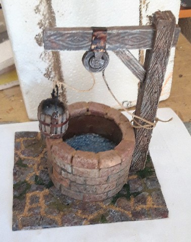 Buenas. Os dejo una fuente de pared y un pozo pertenecientes a un diorama que me han encargado . Todo en poliestireno expandido y extruido combinados.