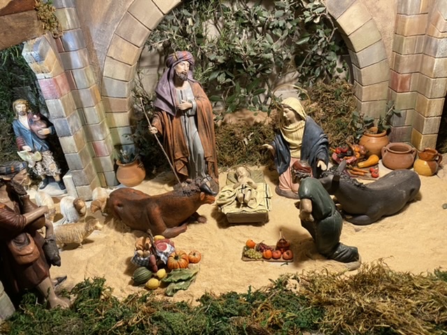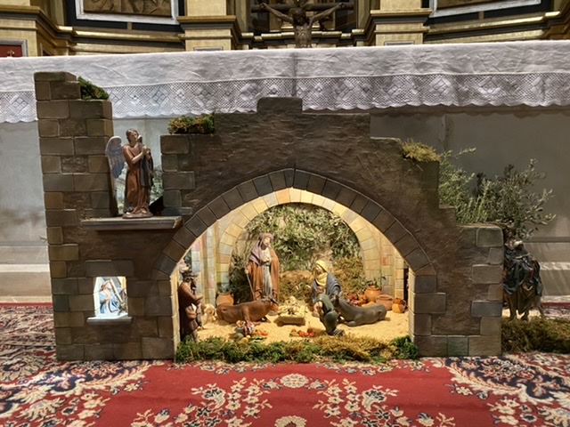 Se puede percibir el silencio dentro de la Iglesia, y el pesebre iluminado junto al altar, sobrio y elegante al mismo tiempo, presidiendo el ciclo navideño.