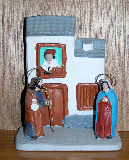 Ah, cómo son las casualidades... yo me compré la misma, pero idéntica, "posada", hace dos semanas en el mercadillo de anticuarios de la catedral. Es preciosa, tipo "popular" y me hace pensar en personajes de "santons" provenzales.