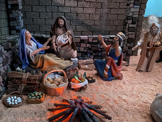 Compartimos aquí con todos vosotros nuestro Belén 2021. Realizado por mi mujer y yo con mucho cariño, dedicación, Pasión y Amor y con toda la humildad del Mundo siguiendo muchos consejos e ideas aprendidas de muchos compañeros de aquí del foro. Gracias a todos por vuestros consejos, ideas y enseñanzas. Las figuras son de Javier Guilloto. Son de un tamaño de 24 cms. Ya poseíamos del año pasado las que componen la Sagrada Familia y Los Reyes Magos en Adoración y hemos incorporado este año las de La Anunciación a Los Pastores. Hemos compuesto una escena dividida en dos ambientes distintos separando por una muralla un rincón de Belén donde tiene lugar la escena de La Adoración de Los Reyes de un área exterior al pueblo, contigua a la muralla donde se produce La Anunciación. Las ovejas son de Villarán. Las miniaturas que componen la merienda de los Pastores son de Adrián Navalón de Artes Belenes Chinchilla. En la escena del Portal hay algunas miniaturas de Alfares. Las construcciones como Establo, Muralla, Cueva, Montaña, Palmera, Árbol, Pozo, etc... son modestas obras de mi mujer y mias. Como decimos, siguiendo en muchos casos, muchas ideas, consejos y enseñanzas de muchos compañeros del foro. En particular, la Cueva y Montaña están basadas en enseñanzas de algunas técnicas de Lola Temprado y Lidia Moya a las que también les damos las gracias por transmitirnos su Arte. Sin más, esperamos que os guste y sepáis perdonar los múltiples fallos que seguro que tiene. No dejamos de ser meros aprendices con mucha afición pero en los albores de este bonito mundo.