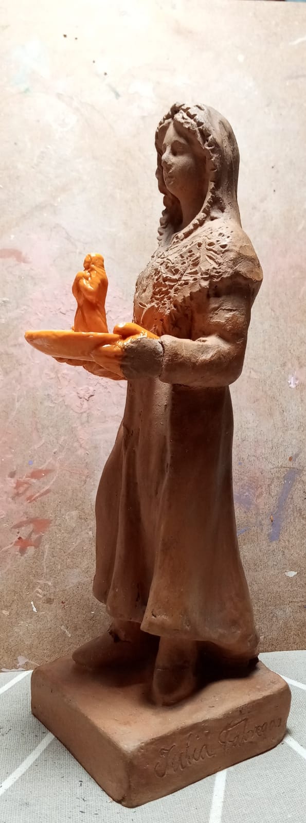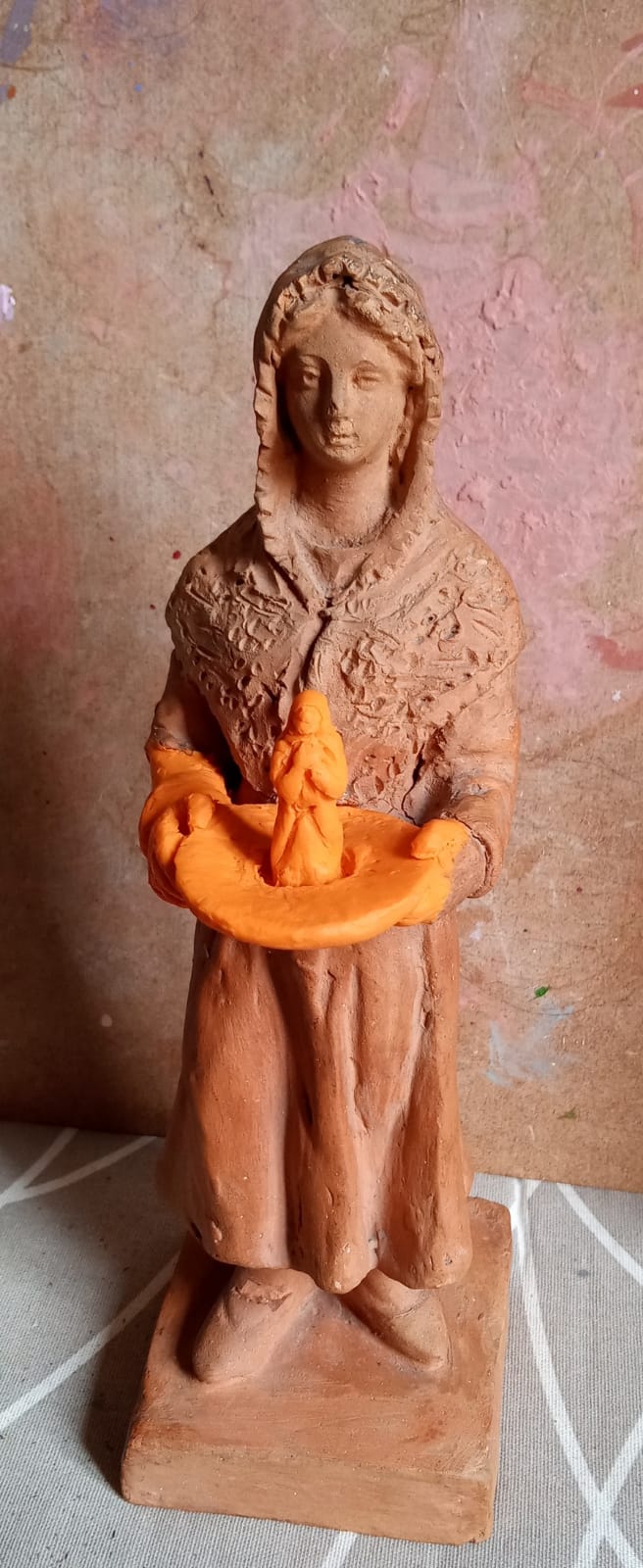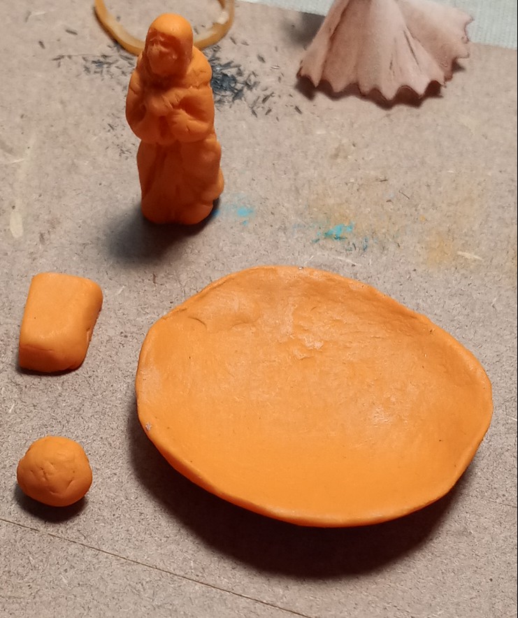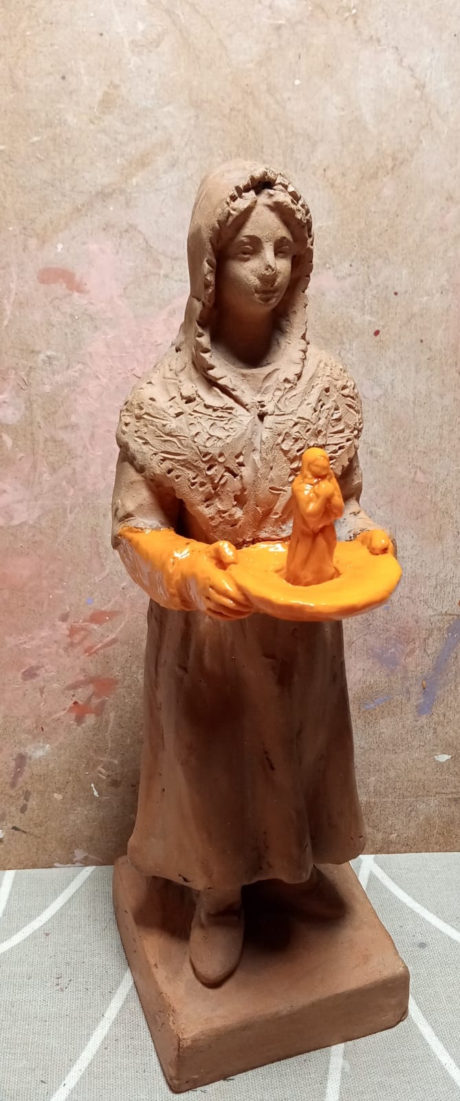 A la vez voy modelando y proporcionando la bandeja y la Virgen...