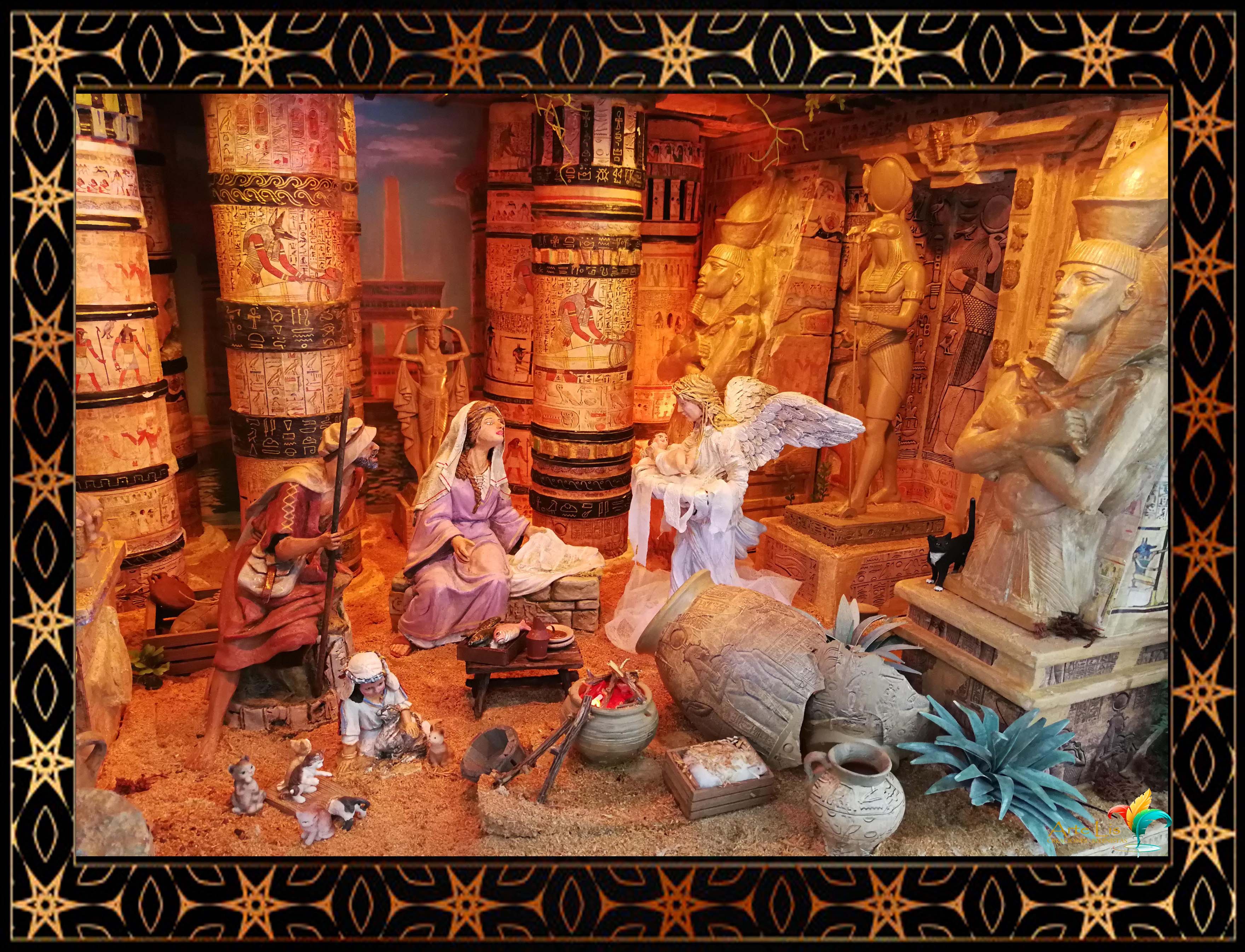 Buenas tardes foreros belenistas, ya llego nuestra época más deseada. Os adjunto el Diorama que hemos montado este año en mi casa, se trata de una escena ambientada en Egipto, la aparición del Angel cogiendo en su regazo al niños, ante la atenta mirada de José y María, y la inocencia de una niña jugando con unos gatos ausente de lo que está sucediendo.