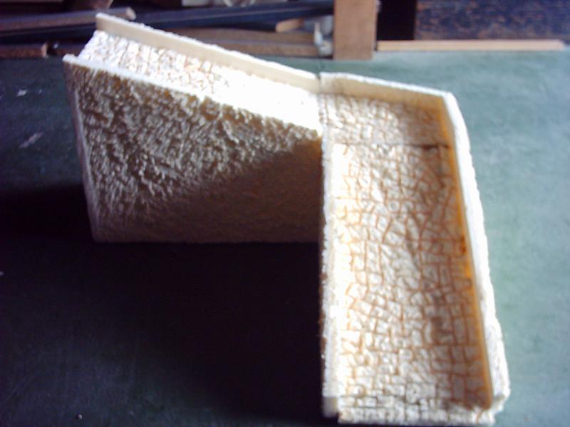 Hola foreros, no se si puede interesar a alguien, pero supongo que siempre habrá gente que le guste probar las cosas que vamos aprendiendo. Este fin de semana hice una rampa de bajada tipo calzada romana, en principio estaba planteado para hacer adoquin tallado, y empecé el planteamiento con una plancha de porexpan extruido (de color amarillo) para ahorrarme el pegado de las piezas y así "tallar" encima del porexpan. La plancha que tengo es de 4 cm. aprox., y decidí partirlo en 2, así cuando hacía la pieza de corte salían 2 iguales, una para cada lado de la bajada de la rampa. Pues bien aquí viene la cuestión........