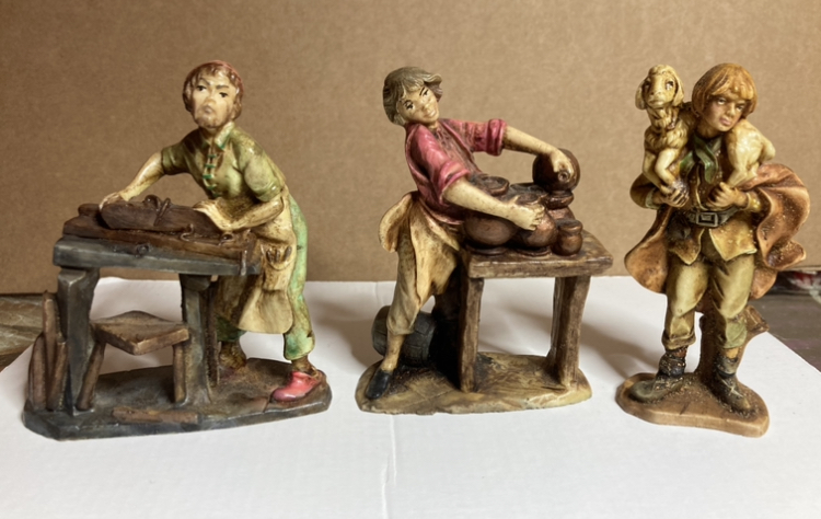 A ver si me podéis ayudar. Estas figuras tienen unos 35 años mínimo, no sé si más, son de marmolina y pintadas a mano. Las pinto mi madre que es artesana y antes vendía a muchos puestos, en uno de ellos las compro pero no se acuerda cuál. Soy de sevilla, por si ayuda.