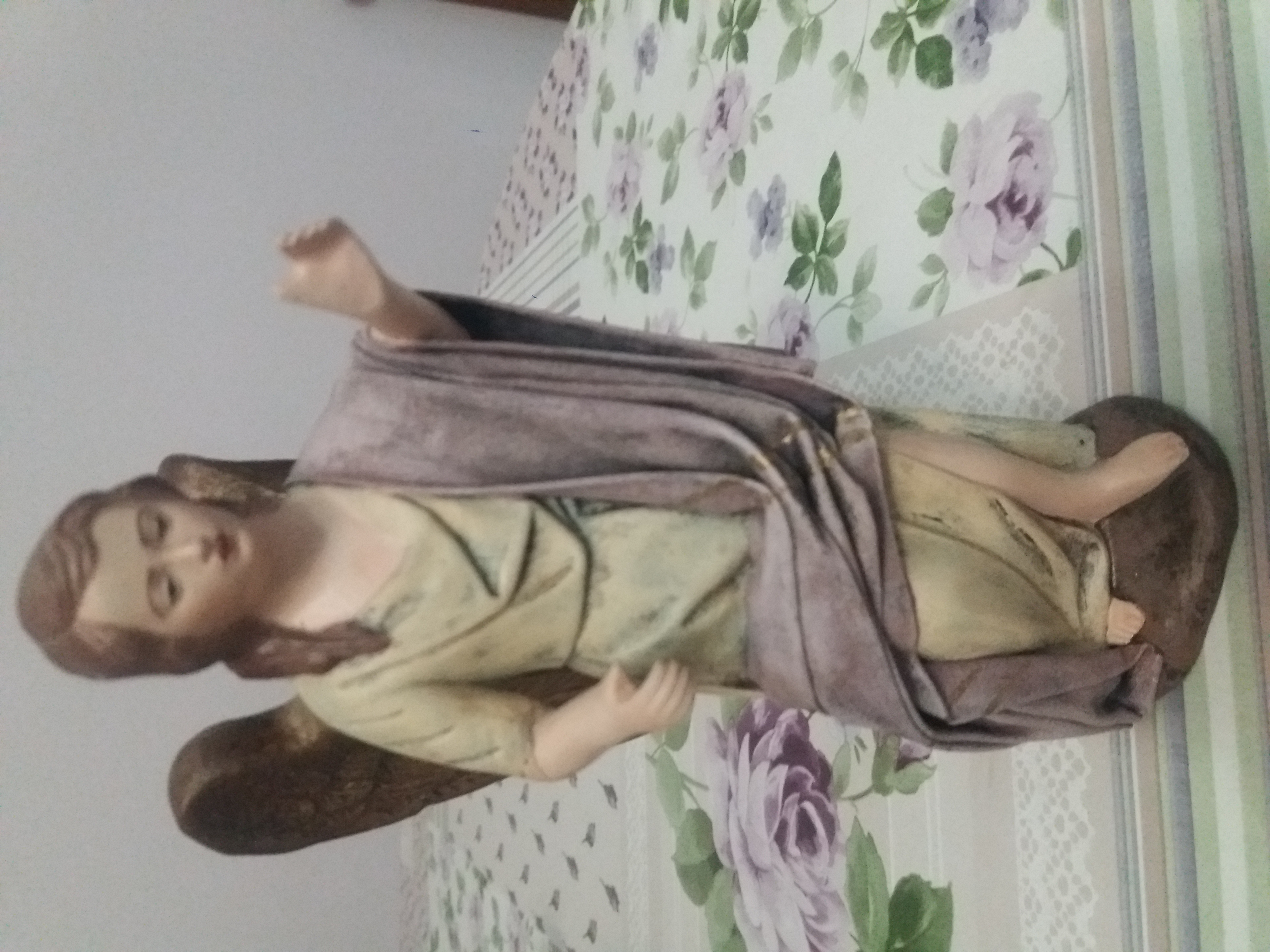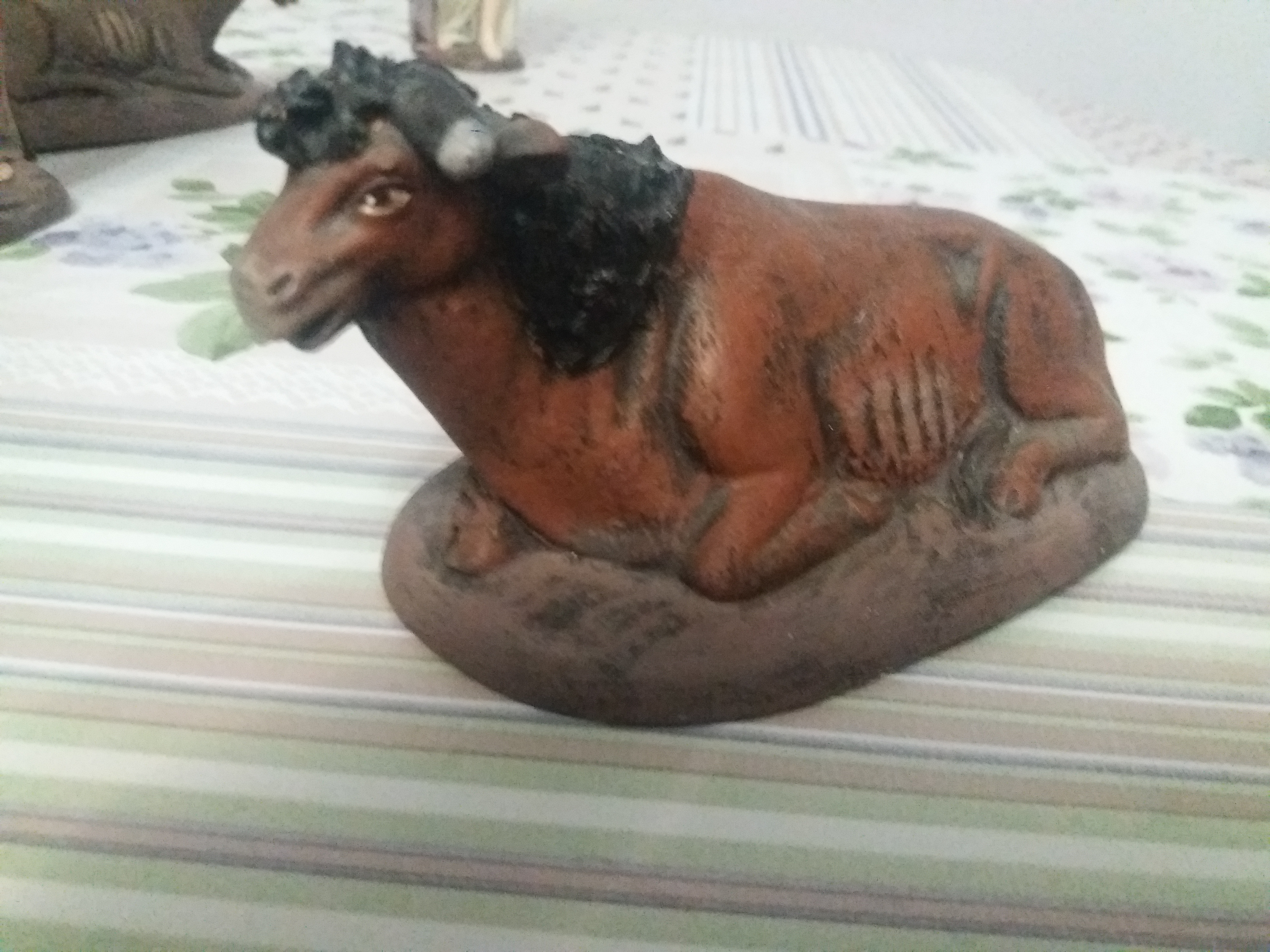 Nacimiento completo para Belén compuesto por José, María, Jesús en pesebre, Ángel, buey y mula del artesano pesebrista murciano Griñán. Buen estado de conservación. Únicamente faltan las coronas de San José y María y el cayado de San José. Se vende con intención de cambiar estas figuras por otras diferentes para montar el Belén hogareño para la próxima Navidad. Las figuras son de 17 cm de altura. El material es barro cocido con tela encolada.