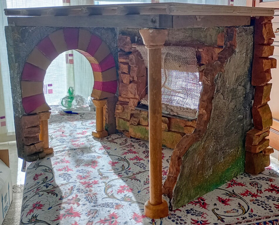 Se vende nacimiento de 17cm. en muy buen estado, completo, en barro de Maestros Artesanos, compuesto de María, San José, niño Jesús, pesebre, burro, buey, ángel, 3 reyes y construcción incluida.