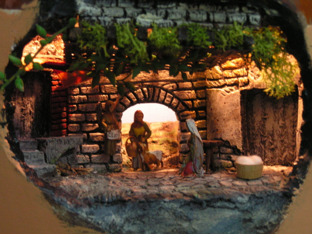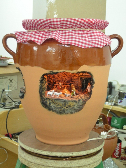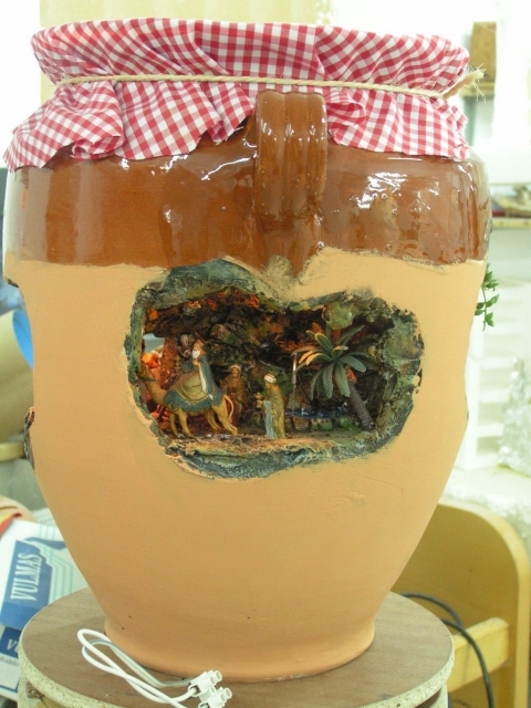 Este Belén que podeis ver esta construido en un jarron de Ceramica donde se me ocurrio realizar 4 escenas distintas, La Anunciación de Maria, La Anunciación a los Pastores, El Portal de Belén y la Carabana de Reyes. Todo es de pequeñas dimensiones dado el poco espacio que tiene el Jarron y las figuras son de Landis de 3,5 cm.