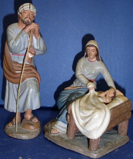 Este finde me he entretenido en fotografiar algunas de mis figuras y luego manipularlas para su edición. Os cuelgo algunas que no sé si habéis visto... primero de todo, algunas Sagradas Familias "ortodoxas". La primera foto es la joya de mis Misterios, realizada por Daniel padre hará unos 50 años, de 16 cm; la segunda es una maravilla de 20 de Andreu Muns (o sea, Muns hijo), no sé de qué época, dedicada a los que no les gusten los belenes que no sean estrictamente "hebreos"; y finalmente, lamento la pésima calidad de la foto, una composición de Delgado, de 12 cm., muy poco convencional, y para mí, preciosa.... a ver si os gustan....
