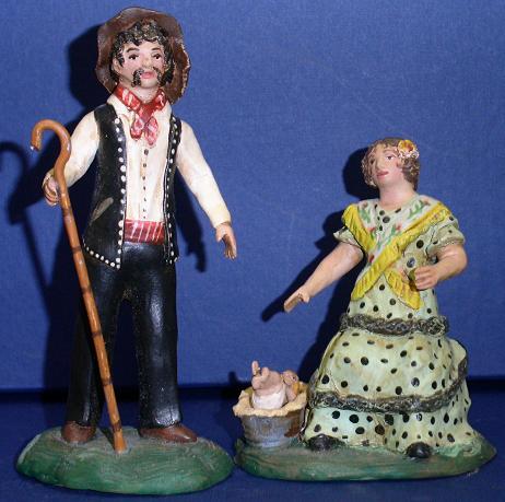 Y en respuesta a mí mismo, los "heterodoxos": La primera, Manuel Collado, figurista andaluz fallecido recientemente; la segunda, Josep Llagostera, figurista gerundense, no tengo más datos, compré el conjunto en Olot, en una tienda; y finalmente, mi nunca demasiado bienamada Esther Font, en un conjunto que ejemplifica espléndidamente lo que decía en otro post sobre la policromía y las figuras sin pintar.....