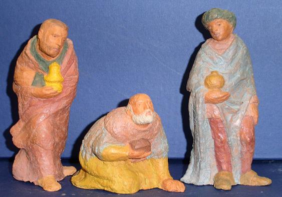 Adquisiciones de ayer lunes, que aproveché el puente catalán para pasear por la Ciutat Vella.... unos Reyes Magos muy bonitos, calculo que de principios del XX, son de 8 cm en terracota..... los tengo clasificados como "anónimo catalán" pero creo que se podría llegar a encontrar el autor, tengo en restauración unos hebreos a camello que son de la misma mano