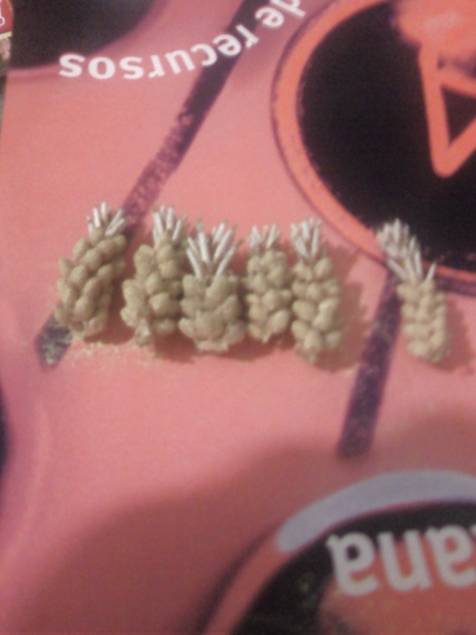 En las 5, 6 y 7 las piñas ya cortadas y preparadas para poner en una caja de fruta, la cual se esta secando en estos momentos.