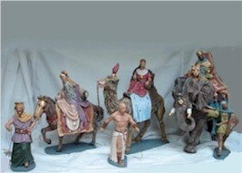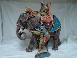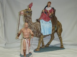 Sin embargo, para la caravana que tú pides no conozco tamaños reducidos, diría que el mínimo son los 12 cm. de Carlos Delgado. El tamaño de las figuras para esa caravana es obvio: los seres humanos que salgan (Reyes, pajes, etc) han de ser de la altura que a ti te convengan, es decir, de 12 a 14 cm. A partir de esto, pues el caballo ha de ajustarse correctamente a la altura del hombre (yo diría que la cruz más o menos a la altura de los ojos), el camello algo más grande y el elefante muy grande.