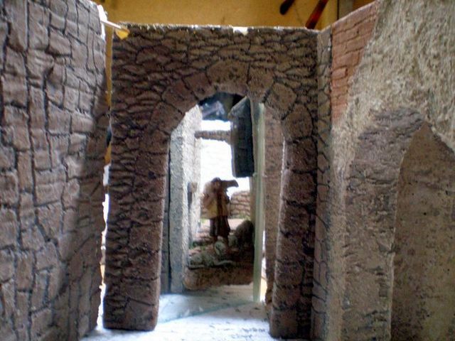 En el fondo me da pena, porque siempre me pasa que cuanto más trabajo algo menos se ve al final, es el Murphy de los belenistas. Se supone que la calle tiene al fondo una luz en un extremo co si estuviera abierta por ahí, de hecho corté a ese nivel la pared. Otra vez será.