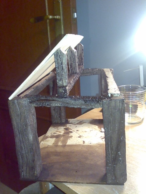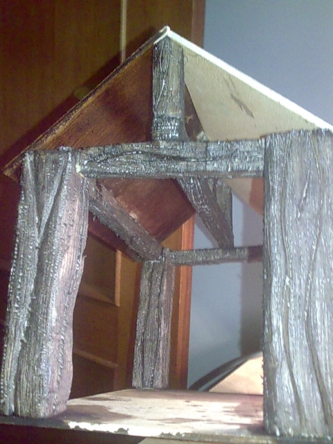 imagen000: primero corté con porex de densidad alta las futuras bigas, luego con un cepillo le di para darle el efcto de madera