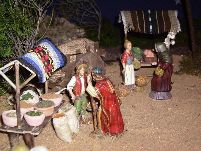 Esta realizado sobre una superficie de 3 metros de lasro por 1.25 metros de ancho. Esta compueto por unas 75 figuras que van desde 8 cm hasta 12 cm realizadas en resina y barro. Todas las construcciones estan realizadas por mi, al igual que el rio, de algo mas de un metro de longitud.