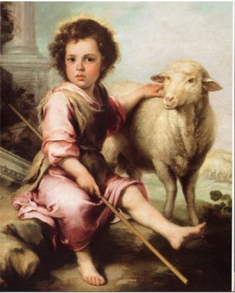 Hola, bueno, aquí hay dos figuras dónde se aprecia mejor el niño y tiene el cordero más grande, lo que a mi me hace pensar al ver la imagen en la de Murillo.