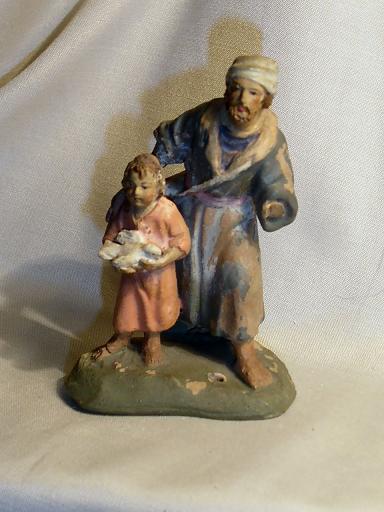 Los aficionados tenemos la gran suerte de tener dos ferias, una casi al lado de la otra, la de Navidad y la de los anticuarios "de la Catedral", que son los que ponen sus tenderetes cada jueves y que en estos días exponen diariamente, hasta el 20 de diciembre. Os cuelgo mis adquisiciones por orden, primero las figuras de Muns que pillé en los anticuarios (de 9 cm) la figura doble de Castells de 6 cm, preciosa pero machacada, luego las nuevas de hoy (y cómo llovía, mi madre), primero las de Delgado, que parecen representar los vicios capitales (11 cm), después unas preciosas populares de Aurora, catarinets y pastores (8 y 7 cm) , la Sagrada Familia de Esther Font con una Virgen nueva (yo le propuse la idea la Navidad pasada de hacer una Virgen con niño en su regazo, ya que la que la otra es un poco "triste" y parece que recogió la idea), tb sirve como "mujer con niño" (7cm), y finalmente un pastor calvo con luenga barba, molde de Daniel, salida del taller de Bertrán, este año tienen poco pq se han centrado en el "pedido de Tarragona" (9 cm). Estoy muy contento.