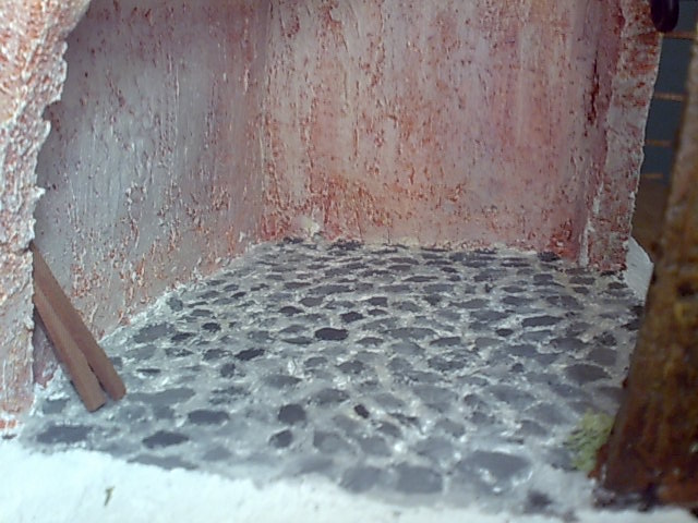 Bueno exactamente esto no es un empedrado pero no se como ponerlo, esta forma de hacer el suleo me salió sin darme cuenta, lo que habia hecho fué con el soldador dibujar las piedras en el suelo y lo pinté de marron castaño (por puro aburrimiento), despues le paso una capa de pintura de revestimiento rugoso y al cubrir los huecos y dejar una suave capa sobre las piedras, despues al dejar secar le dí con unos tonos grises y ya esta, bueno podeis acerlo como querais cambiando los colores. bueno espero que os sirva de ayuda y como diguo siempre que si quereis poner alguna aclaracion o decir alguna cosa para mejorarlo. Pues nada os dejo adios.